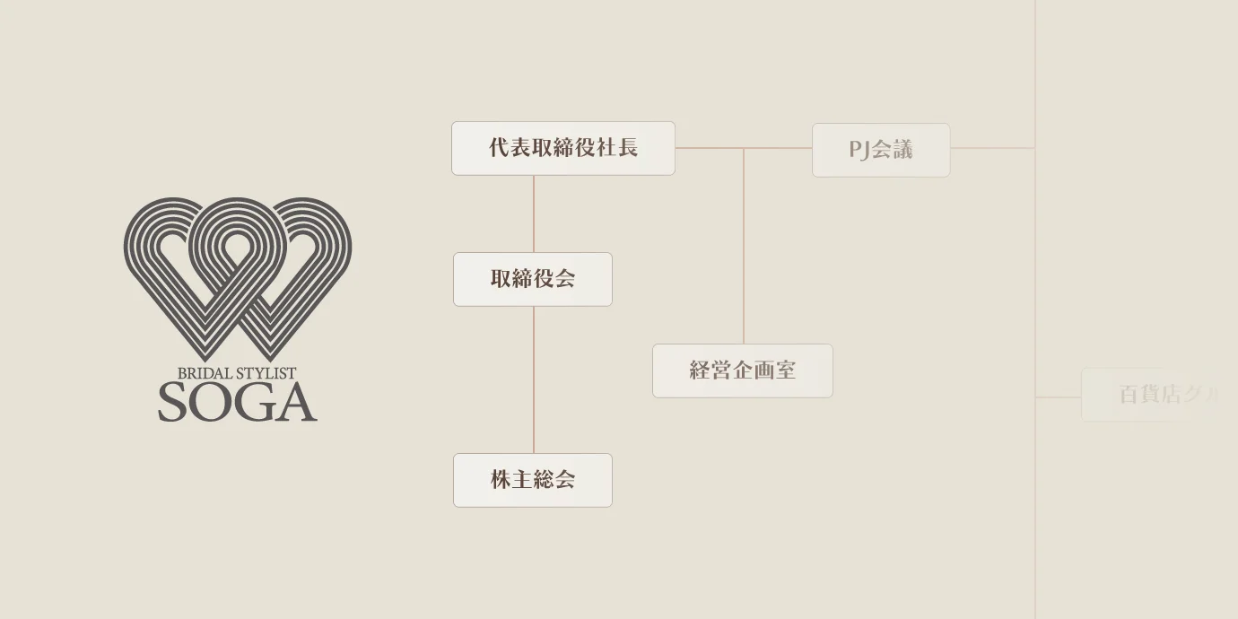 近年では、フォトサービス・美容・着付など、衣裳を軸にした総合的なブライダルサポート体制を強化。「お客様の期待に迅速に応え、最大の価値を届ける」ことを目標に、グループ一丸となって事業を展開しています。